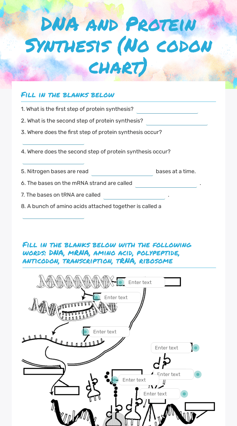 Ariana santiago dna mutation protein synthesis worksheet 1. If you're behind a web filter, please make sure that the domains *.kastatic.org and *.kasandbox.org are unblocked. It occurs in the nucleus. During transcription, mrna transcribes (copies) dna. Start codons, stop codons, reading frame.